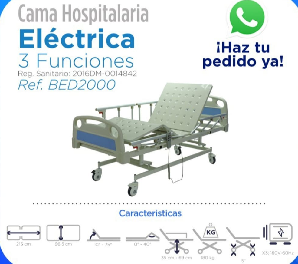 Camas Hospitalarias Eléctricas y Manuales ABS, Concentradores de Oxigeno, Sillas de ruedas,